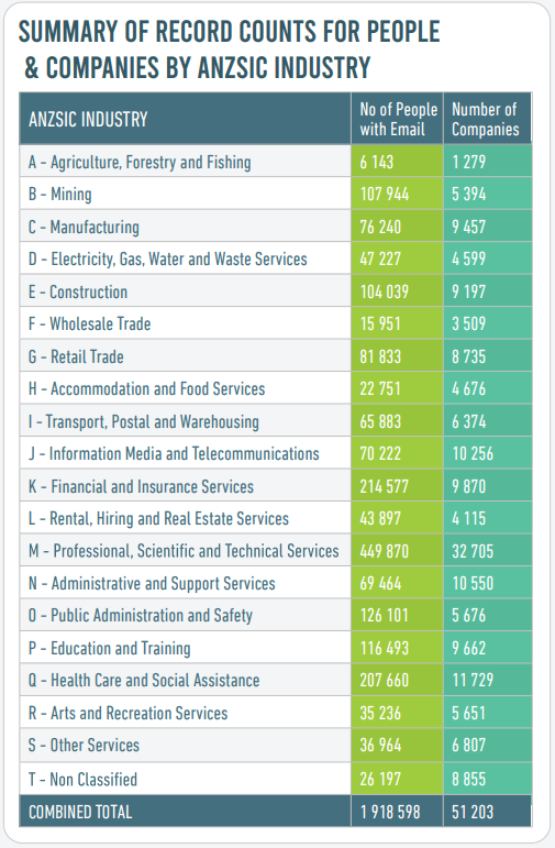 Livewiredata have built the largest commercial Australian business database available with over 51,000 businesses and just under 2 million business people, all with a verified personal business email addresses. With so many people working from home during intermittent lockdowns, reaching these decision makers on their personal business email address is extremely effective.